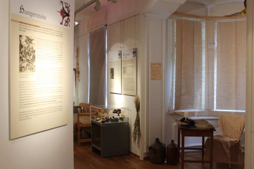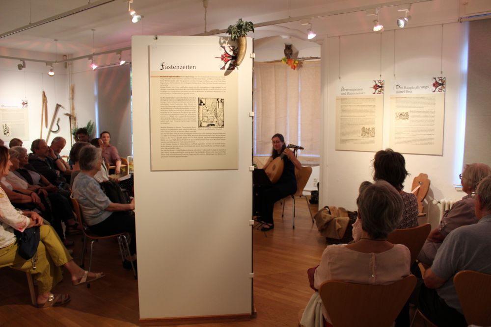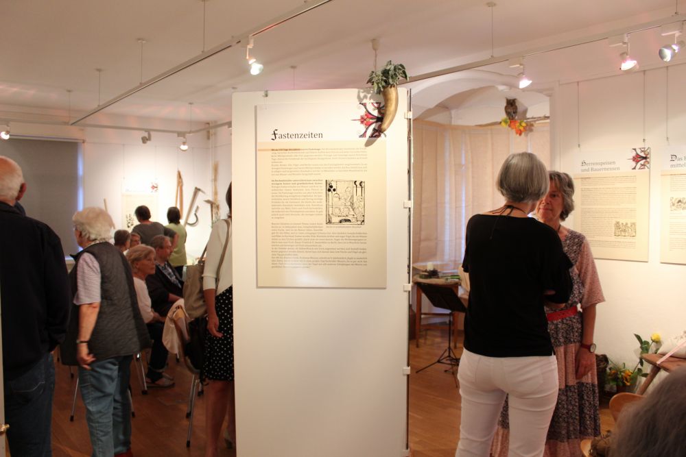 Die Wanderausstellung der Kunsthistorikerin Dr. Alice Selinger gibt einen Einblick in die Esskultur des Mittelalters und erzählt von ungleichen Ess- und Trinkgewohnheiten der verschiedenen Stände, aber auch von schwierigen Bedingungen in Hungersnöten und den Veränderungen der Speisekarte durch Fastenzeiten.